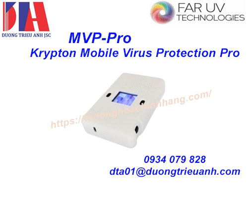 Krypton Mobile Virus Protection Pro (MVP-Pro) là thiết bị cầm tay sử dụng tia Far-UV 222 nm để tiêu diệt vi khuẩn – virus trong không gian cá nhân. Thiết kế nhỏ nhẹ, có cảm biến thông minh, an toàn cho trẻ em và vật nuôi. MVP-Pro cung cấp gấp đôi công suất ánh sáng so với bản MVP, cho phép bảo vệ diện tích rộng hơn mà vẫn giữ thời lượng pin trên 3 giờ. Sản xuất và lắp ráp tại Mỹ.